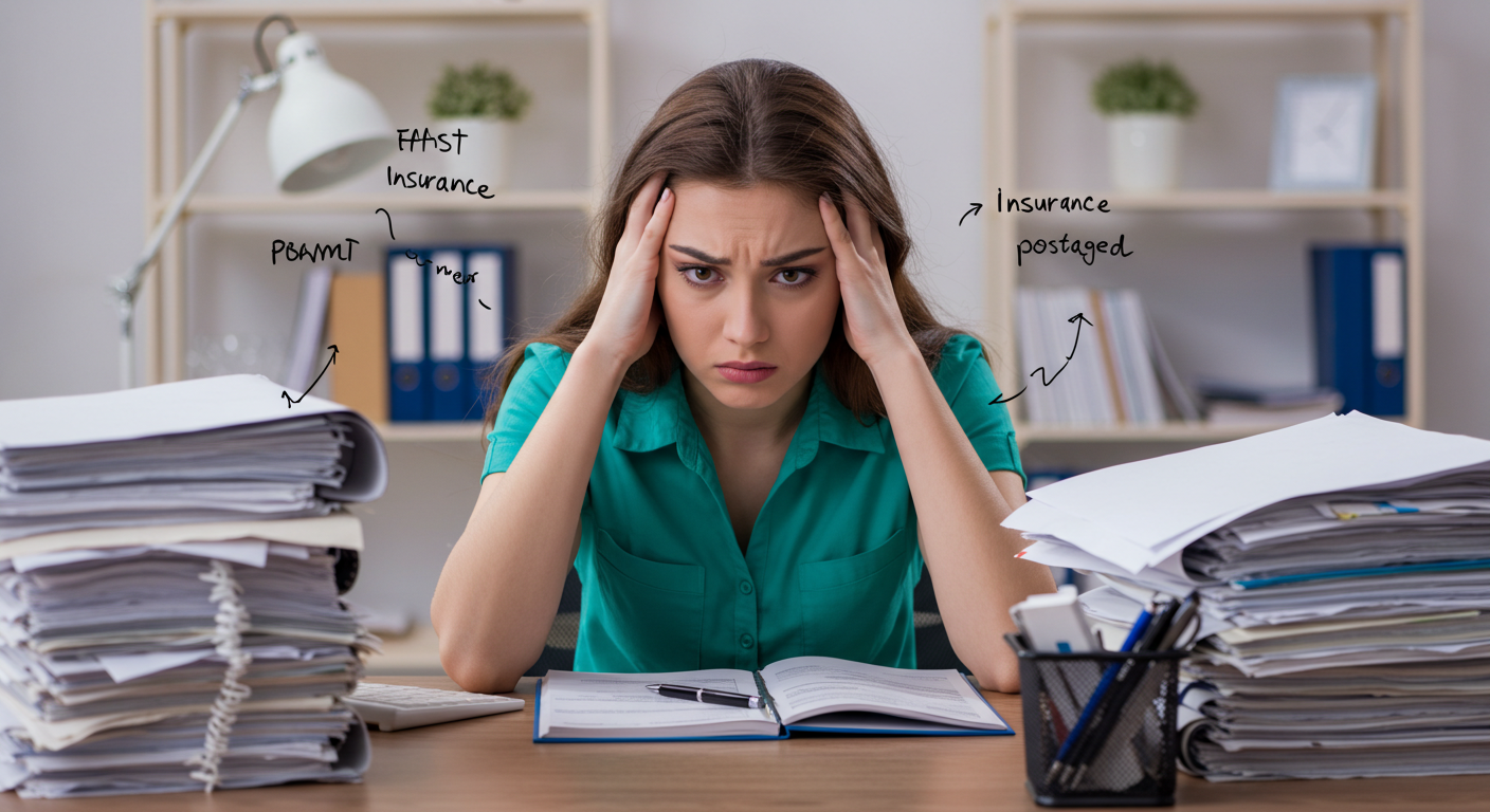 복잡한 보험 서류 앞에서 막막해하는 20대 분들을 위한 이미지예요. 공감이 가시나요? 😥
