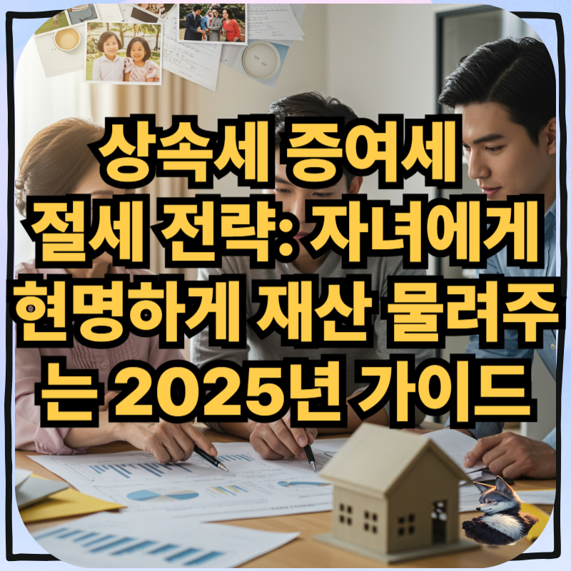 사랑하는 자녀에게 평생 일군 소중한 재산을 현명하게 물려주고 싶은 마음은 모든 부모의 바람일 거예요. 하지만 만만치 않은 상속세와 증여세 때문에 고민이 많으실 텐데요. 복잡하고 어렵게만 느껴지는 상속·증여세, 과연 합법적으로 줄일 수 있는 방법은 없을까요? 이 글에서는 2025년 최신 세법을 기반으로 자녀에게 재산을 물려줄 때 꼭 알아야 할 상속세 증여세 절세 전략을 상세하게 알려드립니다. 미리 준비하고 계획해서 불필요한 세금 부담은 줄이고, 자산은 더욱 가치 있게 물려주는 노하우를 지금 바로 확인해보세요! 💸✨