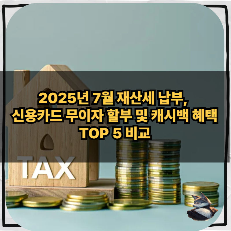 2025년 7월 재산세 납부, 신용카드 무이자 할부 및 캐시백 혜택 TOP 5 비교